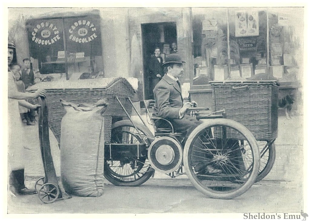 The Coventry Motor Co. also submit for the careful consideration of tradesmen the "Coventry Carriette." With this method of delivery one boy can easily do the work of a man and two horses. At an extremely small estimate this should effect a saving of at least seventy-five per cent, from present expenditure