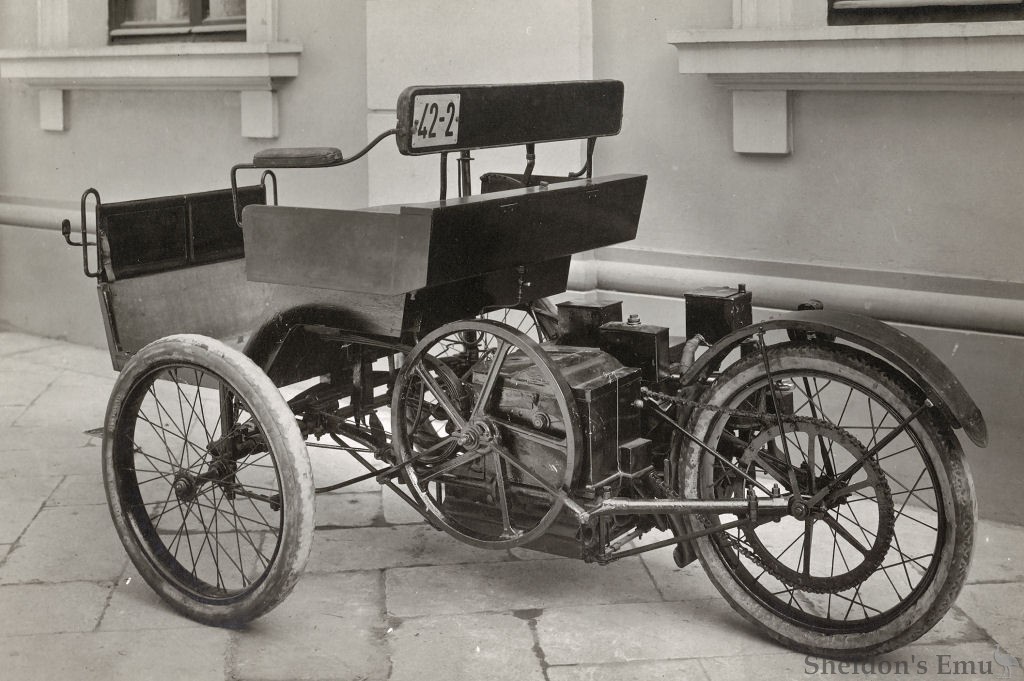 Considered the first Italian motorcycle, this machine was built in Padua by Professor Enrico Zeno Bernardi. It was a four-stroke engine on a trailer attached to a conventional bicycle, known as a Rimorchietto .