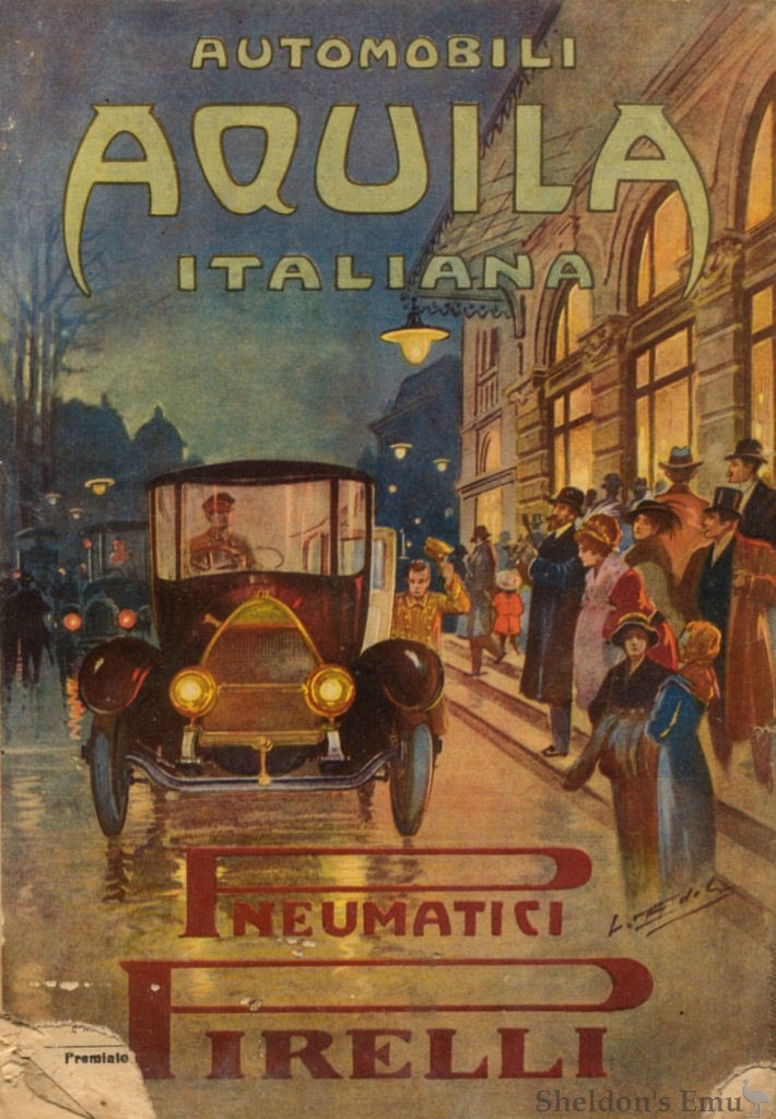 His greatest claim to fame, however dates back to the same year he built the Cappa motorcycle, 1905, when he founded the Aquila Italiana firm which produced automobiles. In 1906 at the Turin Fair he presented a new car which had a number of interesting technical solutions not least of which was alloy pistons. (See also Borgo and Bentley).