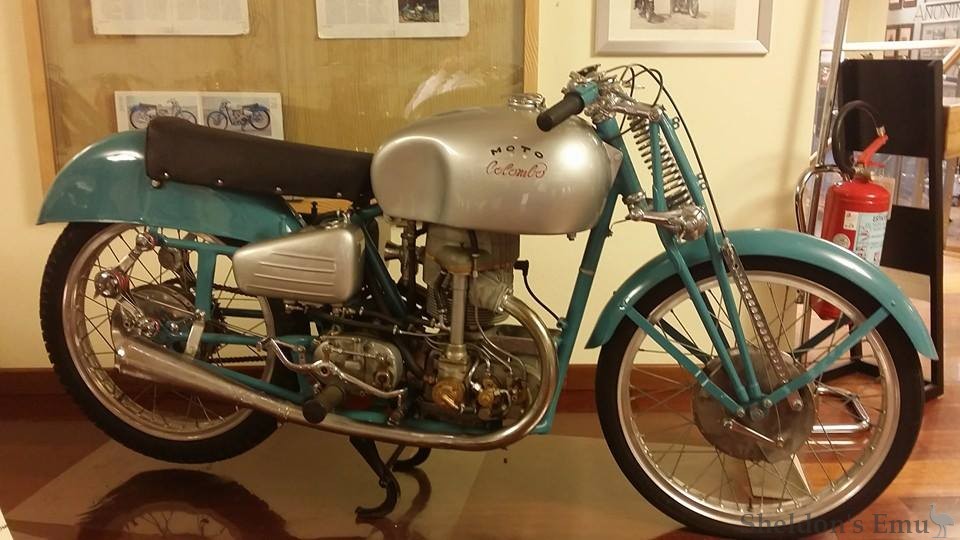 Born in Gerenzano in 1908, Ercole Colombo served his apprenticeship with Moto Frera before establishing a workshop in Abbiate Guazzone where he and his small team created a 250 cc rotary valve engine, the advantages of which are the considerable reduction of reciprocating parts and subsequent lost energy. The machine was first presented in 1947, with a second version appearing in 1950.