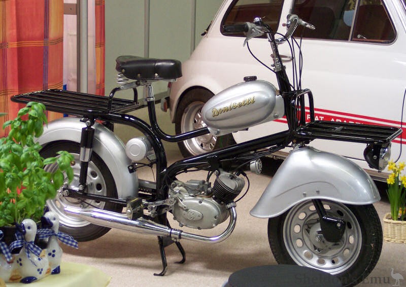 They also built bicycles equipped with an Asso auxiliary motor, the Giove for men and the Dalia for women. Their Vedetta scooters were powered by 49cc DEMM two-strokes.