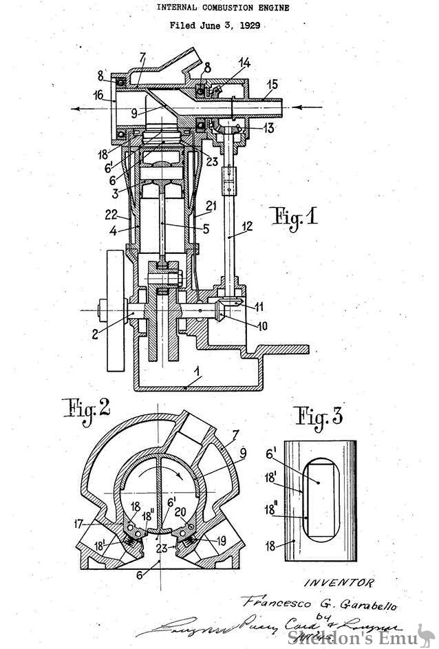 The power-plant was a 984cc (56 x 100 mm) side-valve with a three-speed gearbox driving the rear wheel via shaft. The cylinders and heads were originally cast in one piece, but when the model went into production in 1923, they were cast separately. The carburetor was a Zenith and the ignition by Magneto Bosch. The front suspension was a parallelogram fork with air-assisted suspension system not disimilar to that of ASL. Despite the acceptance of the public, it turned out to be too costly and in 1924 the Garabello factory ceased production.