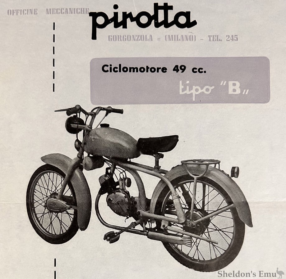 After WWII Gerolamo Pirotta began construction of mopeds and light motorcycles, the first appearing in 1948 as a moped with an Alpino engine.