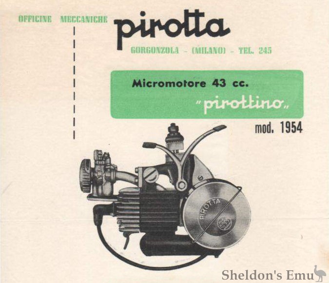 In 1949 the firm built the first Pirotta 49cc engine with 3-speed knob control.