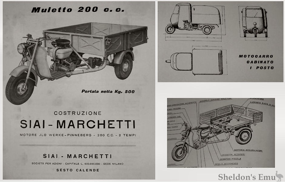 Advertising as Marchetti F.A. of Milano they built Stabil Scooter trailers, and in 1954 offered a range of Stabil motocarro.