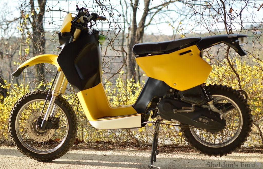 Several scooter models were listed in the 90s, all with 50cc Minarelli engines apart from the Scross, an offroad scooter fitted with mx tyres and suspension. The Scross was powered by a two-stroke reed valve 49cc Franco Morini engine.