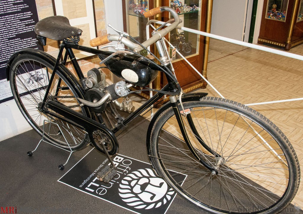 Introduced at the 5th Milan Fair of 1924, the engine kit is complete with connections, tank, pipe and drive chain. The auxiliary two-stroke unit weighs 7 kg and has a displacement of 75cc. Fired by an Eisemann magneto and fed by a GC carburettor, it was the smallest auxiliary engine on the market in Italy at the time.