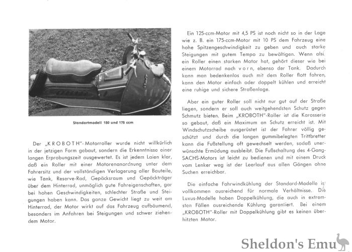 Here is the text of a flyer from the 1950s that explains the advantages of the Kroboth and especially the differences to the Vespa in an almost embarrassing way:
