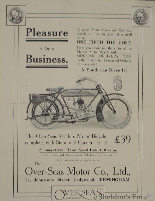 The Over-Seas Motor Co., Ltd., built motorcycles at 1a Johnstone Street, Ladywood, Birmingham, [1] between 1914 and 1916, to a design by W. J. Lloyd who was the original designer of the Quadrant.