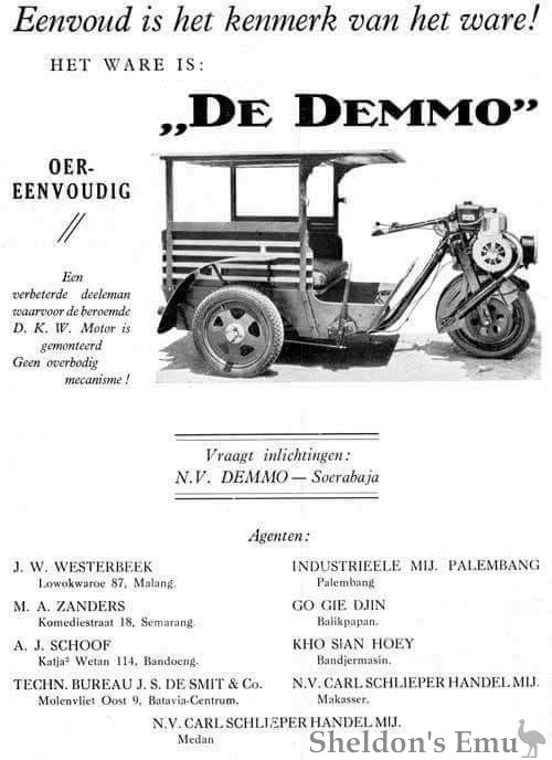 The original Demmo two-stroke engine was changed to a Merkur two-stroke from Germany, and they also fitted DKW engines.