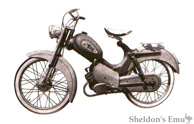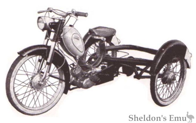 According to a 1954 article in "De Nederlandsche Rijwielhandel" which shows an aerial photograph of a quite substantial factory, some of the carrier bicycles were fitted with auxiliary engines of 98 and 118 cc, and the motorcarriers had 145cc JLO or 150cc Royal Enfield two-stroke engines with kick starter. Other models had JLO 200c and 250cc powerplants, swinging arm rear suspension, and reverse gear.