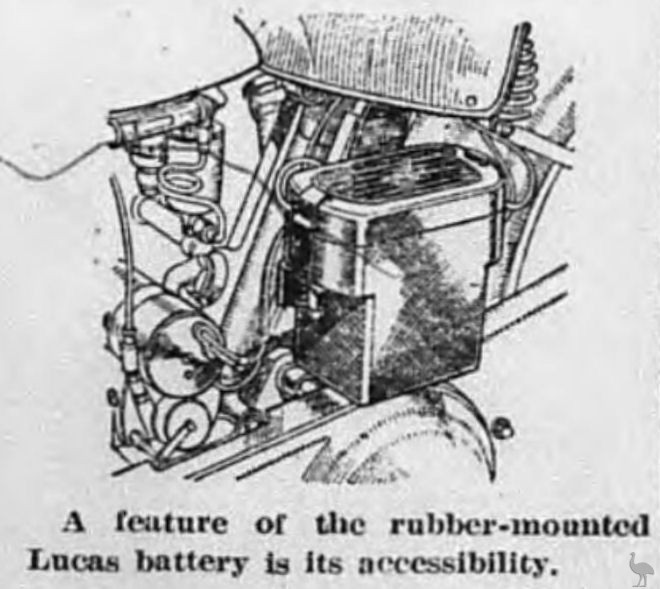A feature of the rubber-mounted Lucas battery is its accessibility.