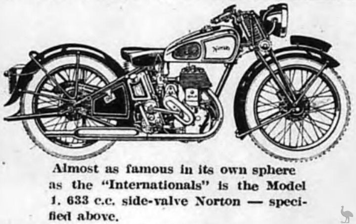 Almost as famous in its own sphere as the "Internationals" is the Model 1. 633 c.c. side-valve Norton - specified above.