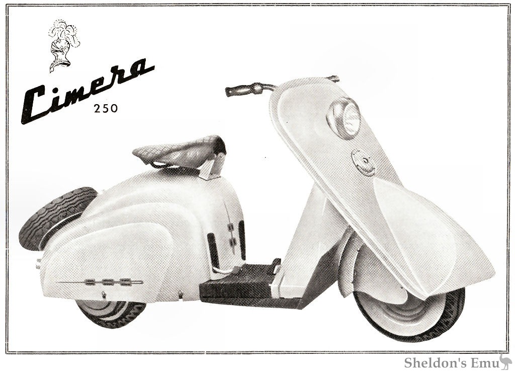 The Cimera scooter was somewhat similar to the second version of the Belgian Cushman company's scooter and there may have been a connection. José Bolinches was residing in Belgium in the 1940s, a time when the Belgian firm was active.