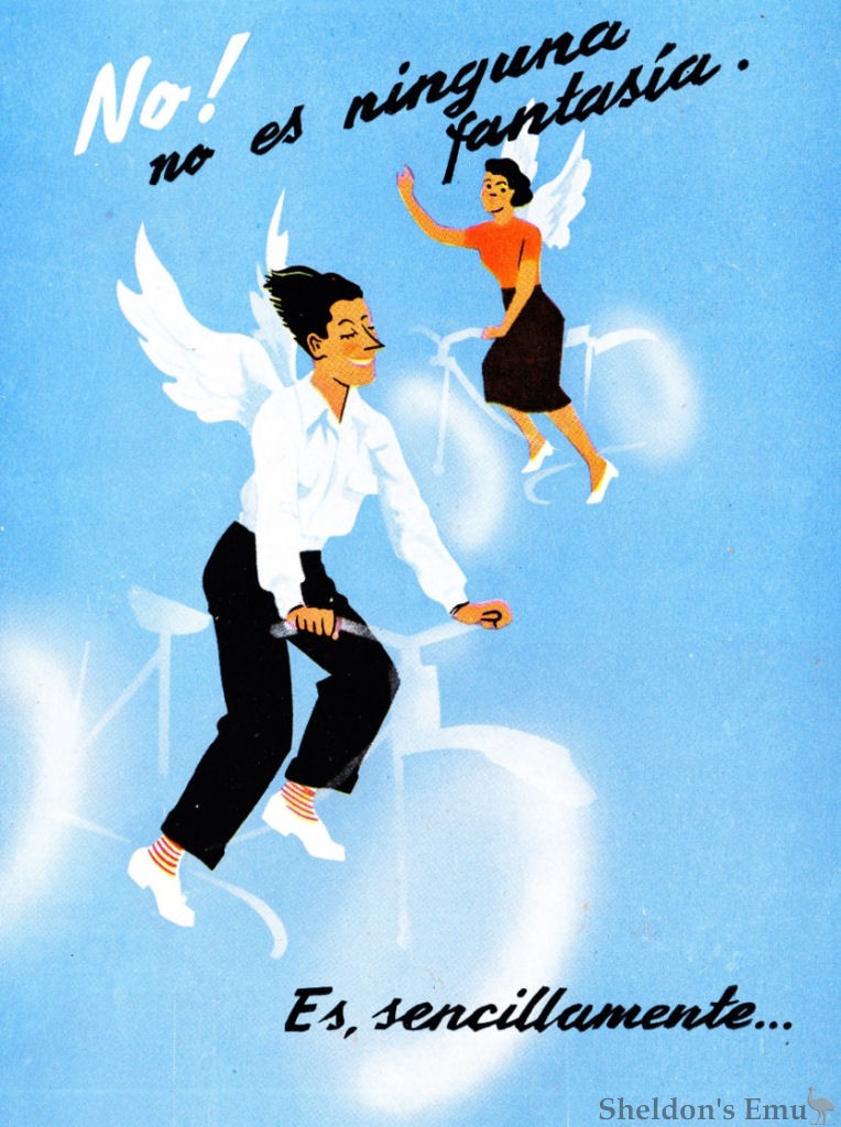 In 1953, telescopic front fork and automatic clutch were introduced; in 1954, drum brakes. In 1955 the engine size was reduced to 45 cc to conform with new moped legislation.