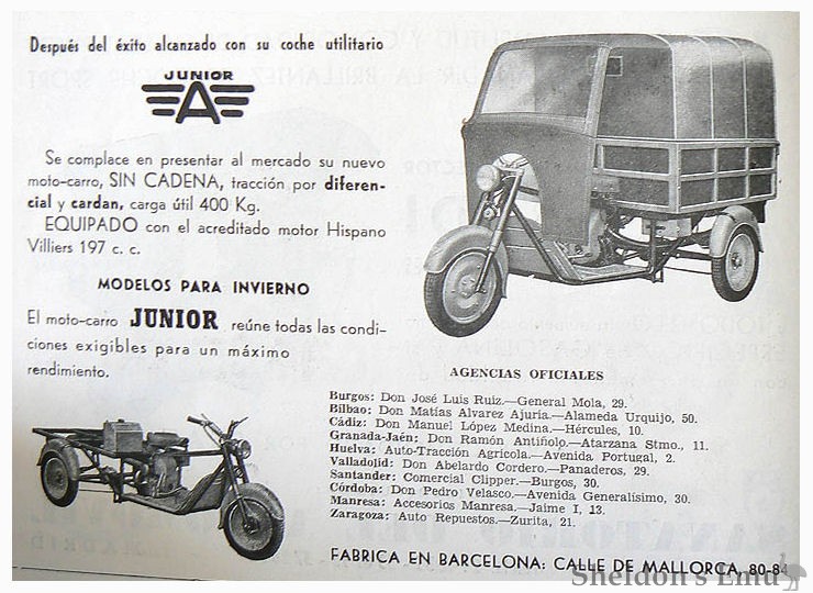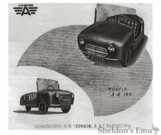 They also built the Junior microcar from 1955, powered by Hispano-Villiers 125 and 197cc engines. Only 16 or so were built and were distributed by the Marcom company.