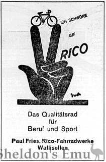 Paul Fries ran a bicycle factory which had operated as early as 1953, which at some point produced mopeds. A 125cc scooter named the Rico Roller was advertised in 1954 - it was developed from the IFA, with more attractive bodywork.