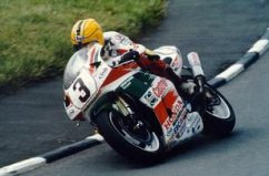 Stubborn, he was able to win the Tourist Trophy after falling in the wet and picking up his bike. The fact that it was "bent" didn't seem to bother him much.