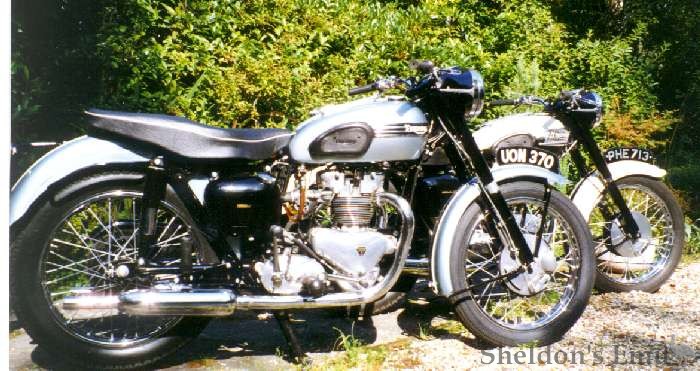 Two fifties Triumphs from Pete Macey - a 1956 T100 (front) and a 1959 T110 (behind)