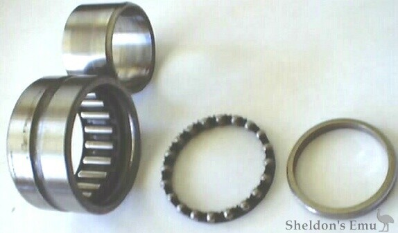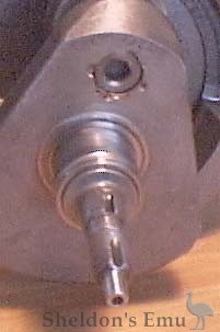 In the pictures below the split inner race can be seen on the crank. What are not so obvious are the shims [same type as drive side] behind the race, which positions the crankshaft central in relation to the bores. This must be done BEFORE the drive side bearing is shimmed to allow for crankshaft expansion. I give the drive side bearing .010'' clearance just to be on the safe side. It gets bloody hot here in OZ!