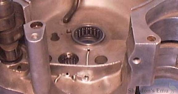 After shimming the crank you will have to make the spacer that goes behind the crankshaft timing gear, which locks every thing together. This is done by measuring the distance between the end of the inner race and the back of the crank gear after it has had the back ground flat.