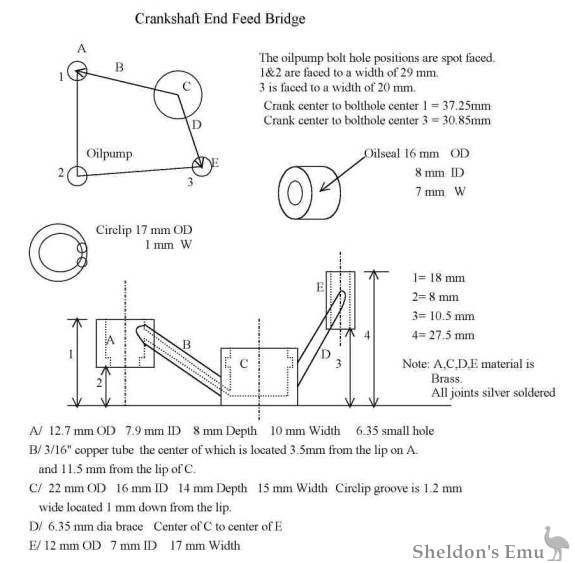 This drawing gives the dimensions of the crankshaft end feed oil bridge.