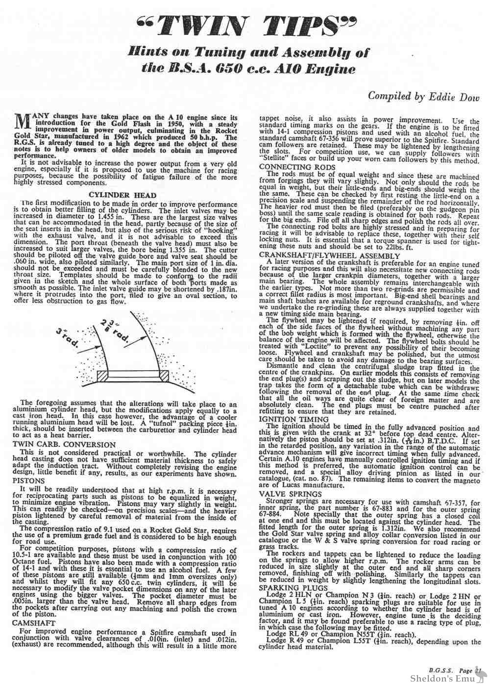Hints on Tuning and Assembly of the B.S.A. 650 c.c. A10 Engine