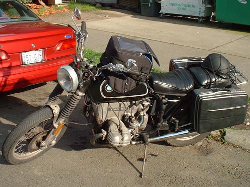 With other bike projects and more practical matters at hand, the drydock for the R90/6 that started as weekes and turned to months ended up being a full year, including a rainy winter parked (covered) outside on the street before I finally hauled it to my mechanic, Mick Vallantine, in August 2004 for major service, which included engine upgrades, a new front fork to cure the tracking problem, and dual front disc brakes, in addition to a new gearbox.