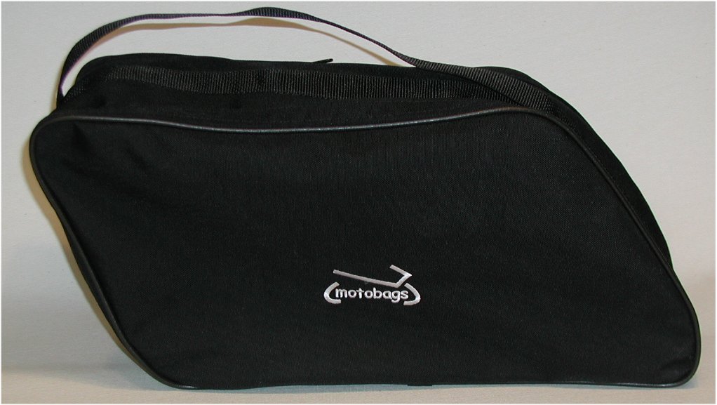 | Gorgeous color-matched teardrop-shaped Wixom hard saddlebags and similarly styled luggage pieces by Fulmer and Bates grace many Airheads of the /5 Series. Zippered Corduraâ„¢ nylon bag liners with sturdy carrying handles, a very popular modern aftermarket touring accessory for later-model Beemers, are currently manufactured by several well-known vendors to fit a variety of hard bag styles, but owners of the oddly-shaped Wixoms have been left out. When I got my R60/5, which came with Wixoms, I started looking for liners; after a few weeks of fruitless searching, I happened upon a Utah outfit called Motobags.com who manufactured a full line of BMW and Ducati custom-fit bags. Through correspondence, I learned that they had made one set of Wixom-style liners on special order more than a year previously. When I asked if they could make a set for me, they decided to add the teardrop bag liners to their regular product line. Motobags Saddlebag Liners for Wixom and Bates Saddlebags are $110.00 per set. | ![]() ![]() |
