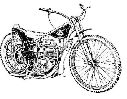 An engine with cylinder capacity of 500cc is the heart of this very fast and efficient speedway motor cycle.This four stroke single-cylinder with a bore of 88 and a stroke of 62 mm has a 7,500 r.p.m on output over 50 b.h.p.
