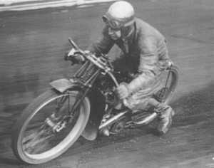 While most of the British press were unstinting in their praise for the brilliant young Australian rider. there were some who barbed their copy with all sorts of innuendo. Much of this was clearly prejudice, and in some cases was caused by natural jealousy. One journalist even got down to attacking the Australian mounts - the inevitable, and in those days almost unbeatable Harley-Davidson Peashooters. The Peashooter was developed especially as a board track racer and it was readily adapted to circuit racing in Australia, which began in the Newcastle area. The Peashooter, perhaps more than any other bike, virtually pioneered dirt track racing in Australia. It was the only early bike specifically designed for the sport.