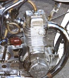 Pictured right is the first appearance of the Jawa 4-valve engine which had been developed to counteract the appearance of the Weslake and Street conversion engines, and was ready for full production in 1977. The earlier 2-valve Jawas had a gear drive to the magneto, whereas the 4-valve opted for a chain driven magneto and was seen as a great improvement.