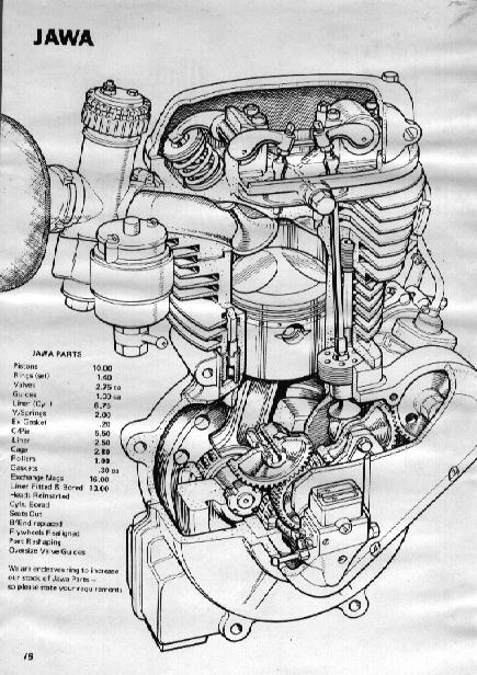 Below is a cut-away diagram of the Jawa 2-Valve engine.