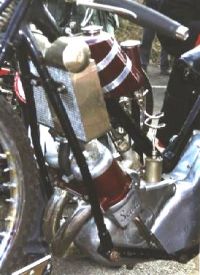 various Trophies and, at Warrington, a Golden Helmet. Pictured Right is a 1930's water cooled, twin 2-Stroke Scott that was developed and ridden by Frank Varey.