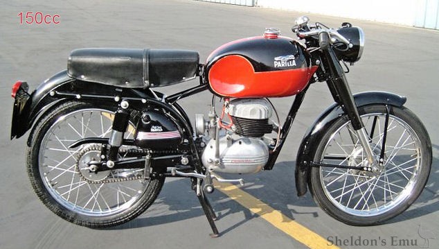 The 125 2-stroke was an upgrade model from the 98cc. Introduced in 1951, this bike was the commuter bike for the Italian masses with many model variations until 1959. The 150cc was introduced in 1953 and the last of these models were built in 1956.