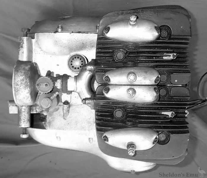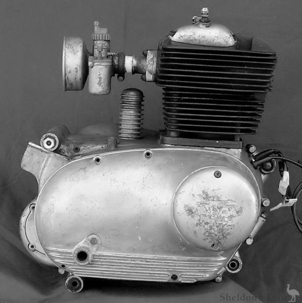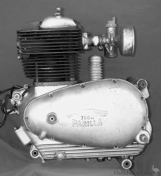 The 250cc Twin (originally named "Setter") made its debut in 1953. Two years later, the "Veltro Turismo" twin began production and the engine size was brought up to 350cc. Many Parilla brochures show all sorts of variations of this model from single seat commuter bike to low slung sports motorcycle. Cosmopolitan Motors imported the Twin model to the USA in very small numbers under the name "Clipper". It was never a big seller in the U.S. and approximately 50-100 Twins were sold before being phased out by Cosmo and the factory in 1961.