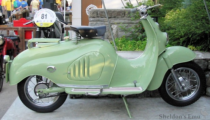 Parilla's "Levriere" was introduced in 1952. It was built with a two-stroke 125cc and later upgraded to 150cc, 4 speed in 1953. Cosmo sold the scooter in the USA under the name of "Greyhound" in late 1957. The Greyhound sported Borrani rims and telescopic forks. It was produced in large numbers and sold around the world before being replaced by the Slughi in 1958. Cosmo was still selling leftover Greyhounds for another two years.