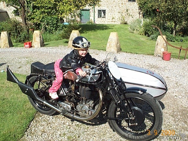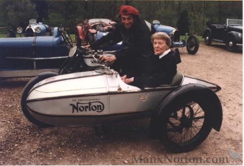 This picture has a story. While attending the Vintage Sports Car Club meeting at Wiscombe Park, Devon a few summers ago I was approached to take this very dear lady for a ride. Her name is the Honorable Bardi Frankland and she is 91 (ninety one) years old. She chose my mount, in preference to the two Bugattis, the ERA and the Alfa Romeo for a spin up the hill-climb! You certainly meet the most remarkable people while riding pioneer machines.
