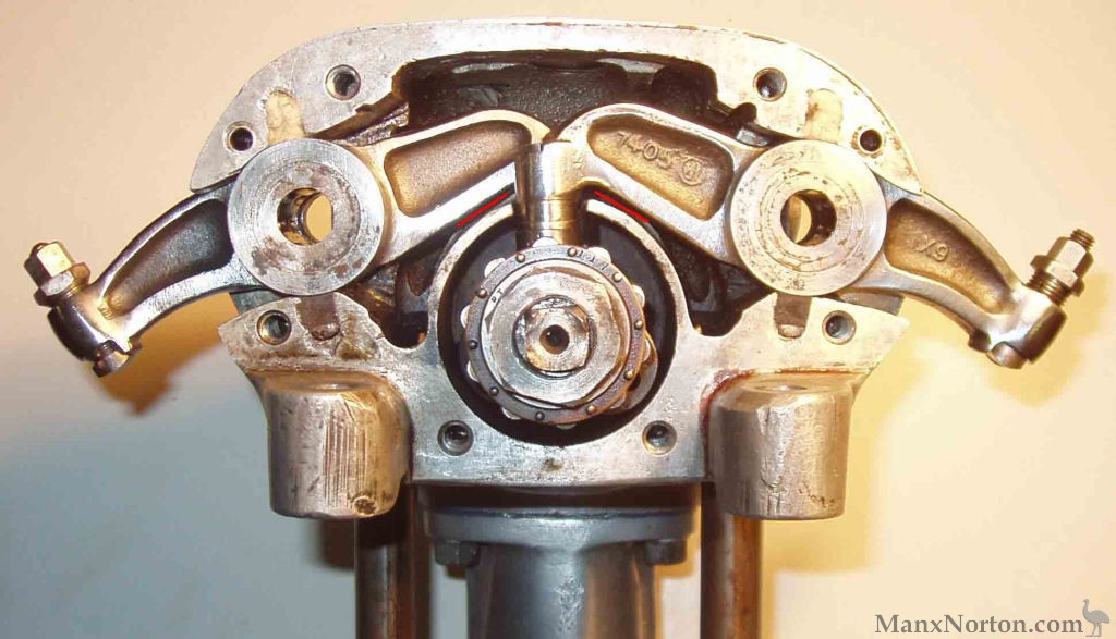 The single knocker cam box, as used on all the 'cammy' models from 1931 to 1958, is a poor design, is prone to break, is difficult to work on and it leaks oil like a primary chain case! Why Norton persisted with it for over 25 years is anybody's guess? Most of the research and development was done on the double knockers, although in 1935 the works machines sported an enclosed cam box.