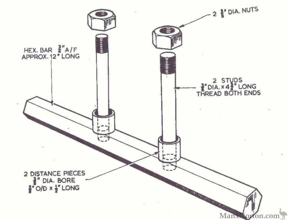 We will start with the workshop. Besides having a decent set of spanners, a strong vice, a big hammer, an impact wrench (preferably air power to about 150 ft.lb. but ONLY used for undoing nuts) and a few pullers; you really need a lathe, a milling machine, cylindrical and surface grinding, all types of welding equipment, a spark eroder , surface hardening equipment, and about 50 special tools, jigs and fixtures to do the job properly! Most of us do not have this equipment and have to use other workshops to help out, but I would suggest that you have access to a lathe, because there are numerous times when bolts, studs, spacers and other fittings need to be modified for proper fitting or made from scratch. You must have a good set of Whitworth spanners (ring, open ended and sockets) and be prepared to make a few special tools and jigs.