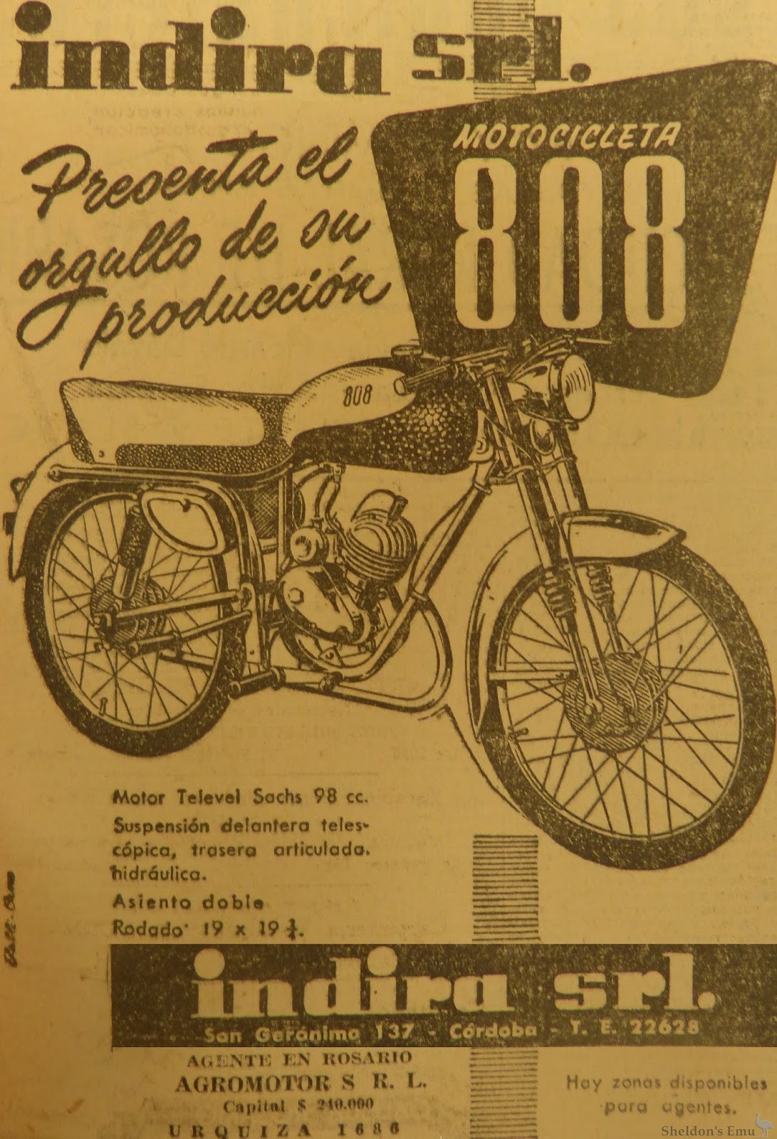 With offices at San Jerónimo 137, Córdoba, Indira srL. was established around 1958, producing motorcycles until the late 1960s.