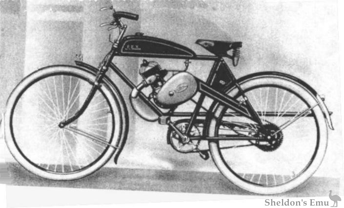 | REX El-transport.1940-41 Lastförmåga 175kg 1,5hk serielindad elmotor på framhjulet. Sex accumulatorer om 85 ampertimmar 36volt monterat under förarsätet. Fordonet var lämpligt för stadskörning och då beräknades att den kunde köra fyra mil med en maxfartpå 40 km/tim. Några exemplar byggdes även med Villiers 98cc-motorer. |
