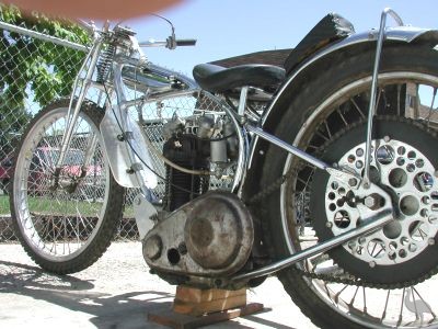 Dave adds ... In 1972 My father wanted to get me a motorcycle that I could not out grow so this is what he came up with. In 1976 I raced one season 4th was my best. But in order to race I had to make some modifications to the bike. I changed the handle bars from the old swept back bars to the uprights and the old gas tank was to wide so we made a new one. I crashed one time and bent the front rim bad and had to put a new one on but kept the old spokes and hub, I still have all the old parts to put back on. I'm sure the bike still runs though I haven't started it in about 8 years.
