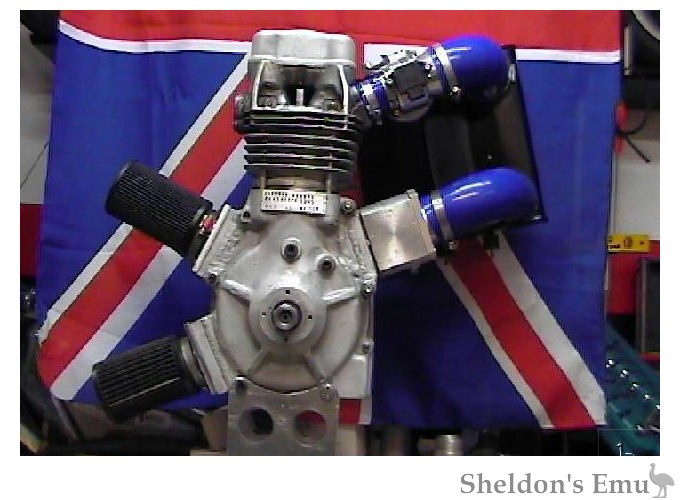 a brutal bottom end torque. The basic engine is Jawa, then I add two reed