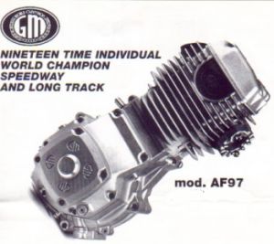The SRB8 engines are intended for normal vertical mounting into the frame, whilst the type AF97 is especially designed for horizontal mounting. The differences between the older SRB8 and the new AF97 are mainly in the head. In the type B8, the inlet ports and track are twin ports and on these, there is a manifold for mounting the carb. Similarly, the exhaust ports are also twin ports with a manifold for mounting the exhaust pipe. On the AF97 however, there is for both the inlet and exhaust ports only one big round hole.