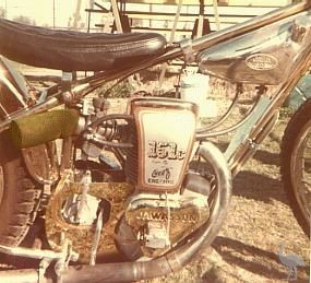 In 1975 John Wasson built up a 2 valve Jawa to go racing on at our local track in Hanford. He had seen Ivan Mauger's gold bike here in the US and was really impressed. He decided to gold plate his bike. It was not nearly as detailed as Ivan's and Ole Olsen's bikes but this one was a runner and was raced every week.