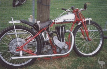 The Swedish Husqvarna speedway machine from 1931. This is a very early one because on the engine are normal coil springs for the valves. Later types had hairpin valve springs.