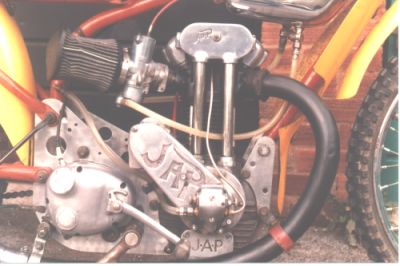 Steve used to race on the Grasstrack scene sometime during the mid 1980's, and fortunately for us, his Godden framed JAP 84s can be seen here prior to one of his events - nice and clean.