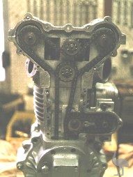 The cam-drive layout was unusual, with a toothed-belt driven by the crankshaft running up and around the two high-mounted camshafts supported either end by high-speed ball bearings. The three-piece camshafts were designed to facilitate cam-lobe changes in case of wear or damage, and also allowed the cam lobe, the cam spindle and drive gear to be made from different materials for maximum component life, while cam timing could be altered by offsets in the drive gears.