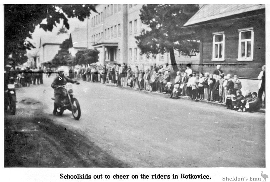 There is the very offensive attitude about money. In Czechoslovakia nobody is trusted, at least not foreigners. It is a place where you first pay for your meal, then get it, or for your rooms and then use them, or for the goods bought and then receive them. One particularly offensive rip-off used at the Trial, in addition to that doubling the hotel rates thing, was the matter of gas for the bikes. To obtain it, you had to buy tickets from the organizers. Lo, and behold, when you lined up in the ever present line, you found they would not accept their very own money. No, we had to buy gas with U.S. dollars, an interesting admission as to the relative value of their money.